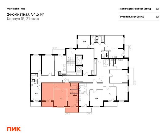Продаётся 2-комн.квартира площадью 54.50 кв.м на 21 этаже 25 этажного дома (Корпус 15, секция 4) проекта ПИК Митинский лес. Светлый просторный подъезд на уровне земли, функциональная планировка, большие окна.