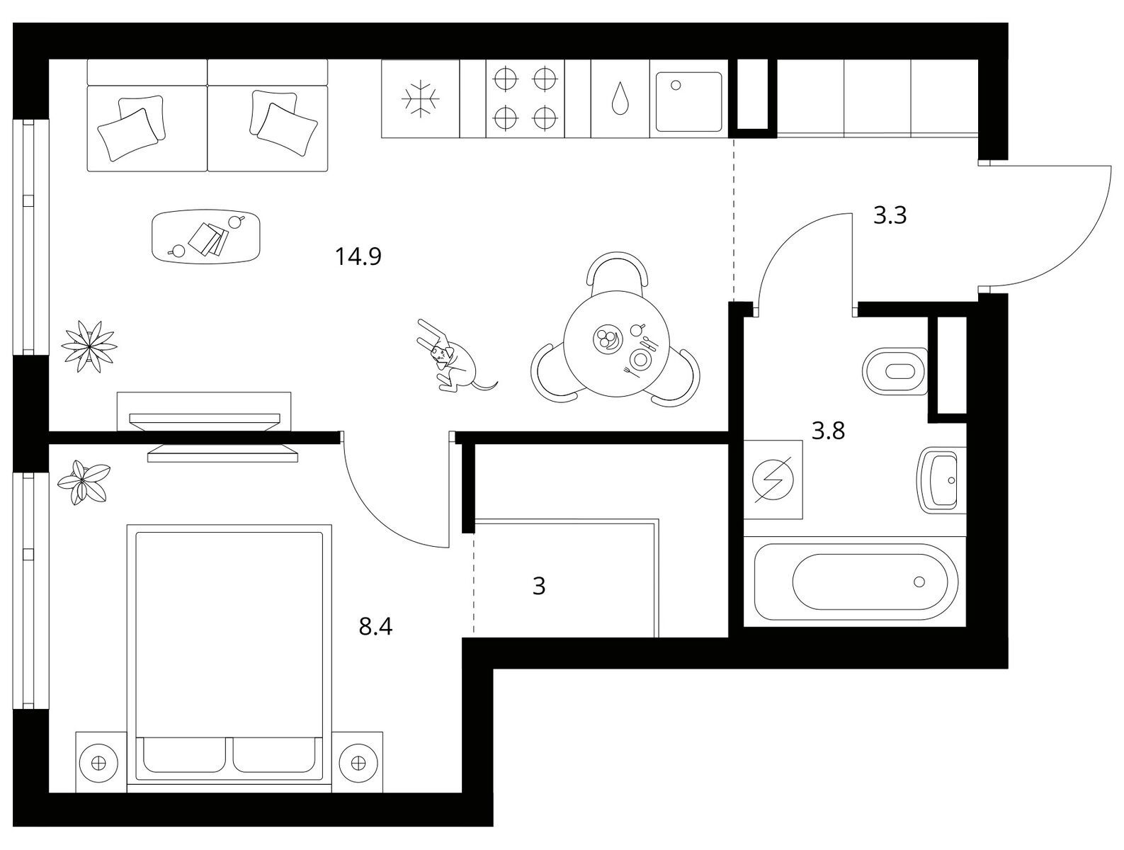 Продаётся 1-комн.квартира площадью 33.40 кв.м на 15 этаже 27 этажного дома (Корпус 4.5, секция 6) проекта ПИК Амурский парк. Светлый просторный подъезд на уровне земли, функциональная планировка, большие окна, с отделкой.