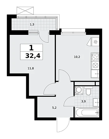 Продаётся 1-комнатная квартира, площадью 32,4 кв. м на 7-м этаже дома комфорт-класса в ЖК "Родные кварталы". Квартира с функциональной планировкой: большие окна, высота потолка 2,95 м, балкон, гардероб.