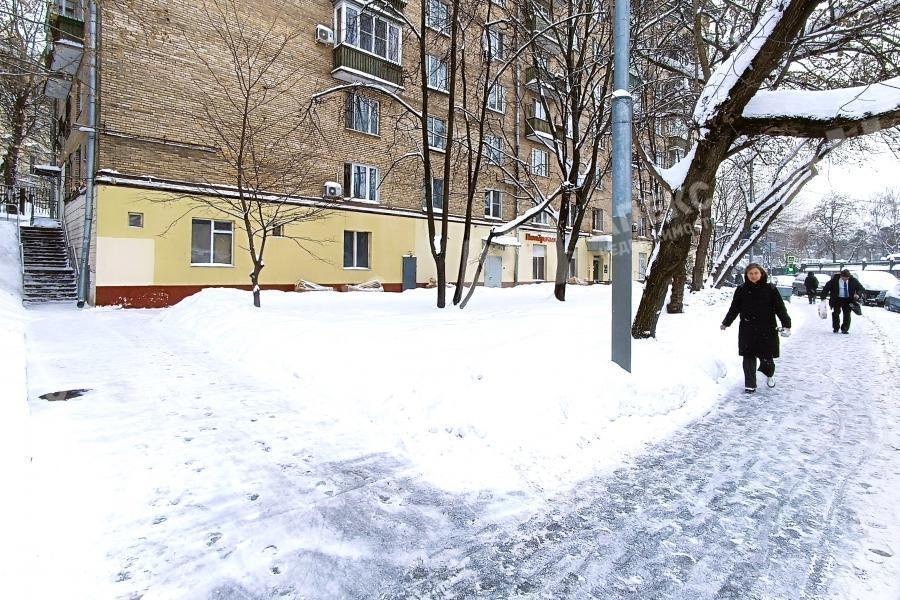 Торговое помещение в новом готовом доме. Рядом оживлённая улица и пешеходные тротуары.