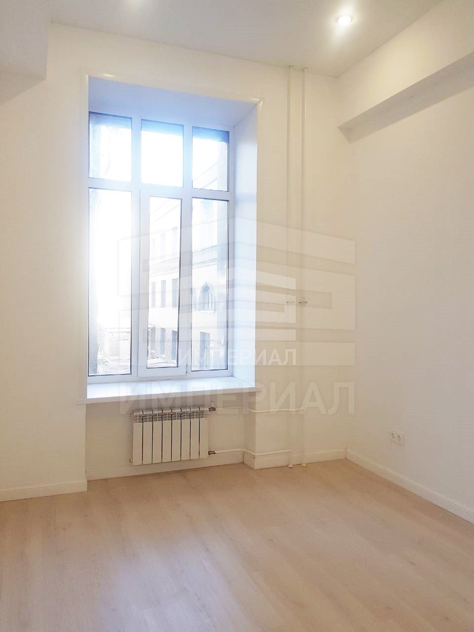 На стенах поклеены обои под покраску, на полу постелен ламинат с плинтусами и откосами. Есть вытяжная вентиляция в санузле и на кухне, выходы хв/гв, место под раковину на кухне. Кроме того, в помещениях уже есть выключатели освещения, розетки для бытовой техники и роутера, а также сделаны закладные для оптоволокна для интернета.