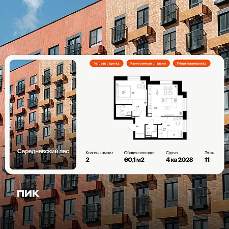 Купить 2к квартиру 70 м² в Белая Дача парк
