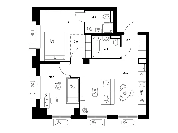 Купить 2к квартиру 57 м² в Середневский лес