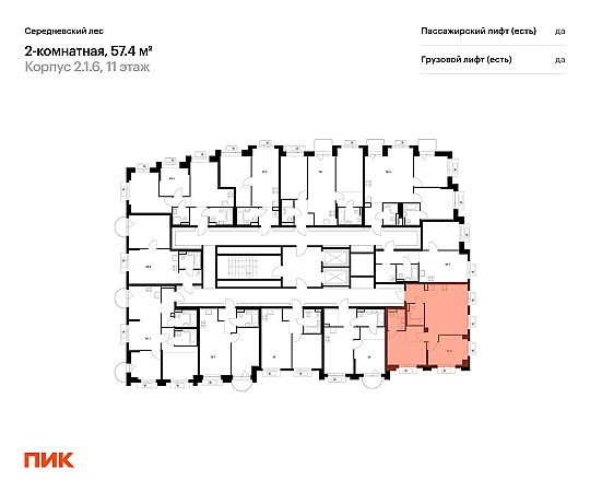 Продаётся 2-комн.квартира площадью 57.40 кв.м на 11 этаже 16 этажного дома (Корпус 2.1.6, секция 6) проекта ПИК Середневский лес. Светлый просторный подъезд на уровне земли, функциональная планировка, большие окна, с отделкой.