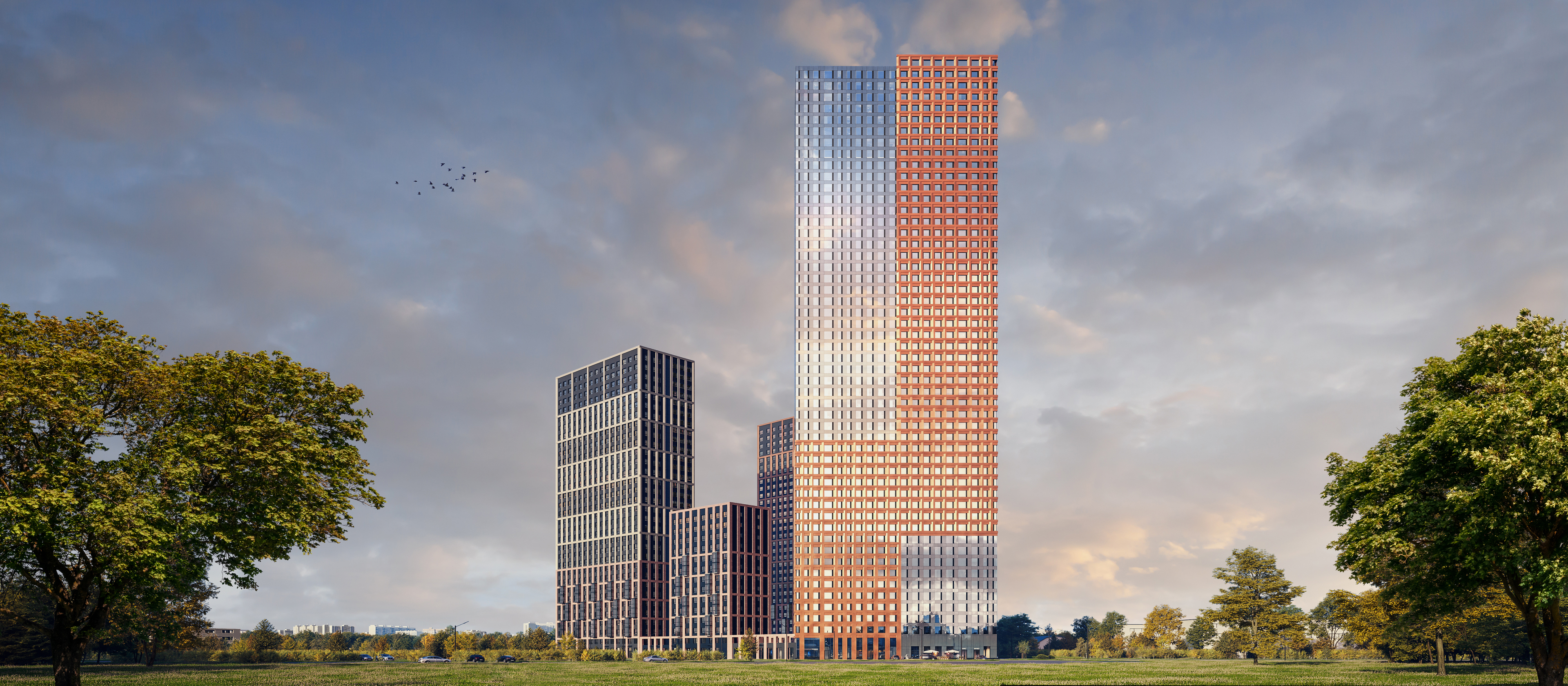Все дома в «Поларе» — с индивидуальным дизайном, так как над проектом работали сразу два архитектурных бюро. Они спроектировали доминанту, в которой отражена стремительность большого города и созерцательное спокойствие лесопарка, а также создали дома с чёткими линиями, динамичной архитектурой и панорамными балконами.