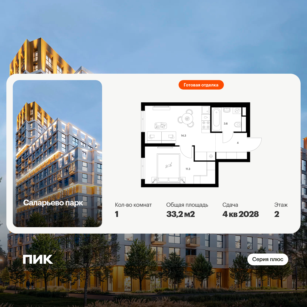 Купить 1к квартиру 37 м² в ЖК Бусиновский парк
