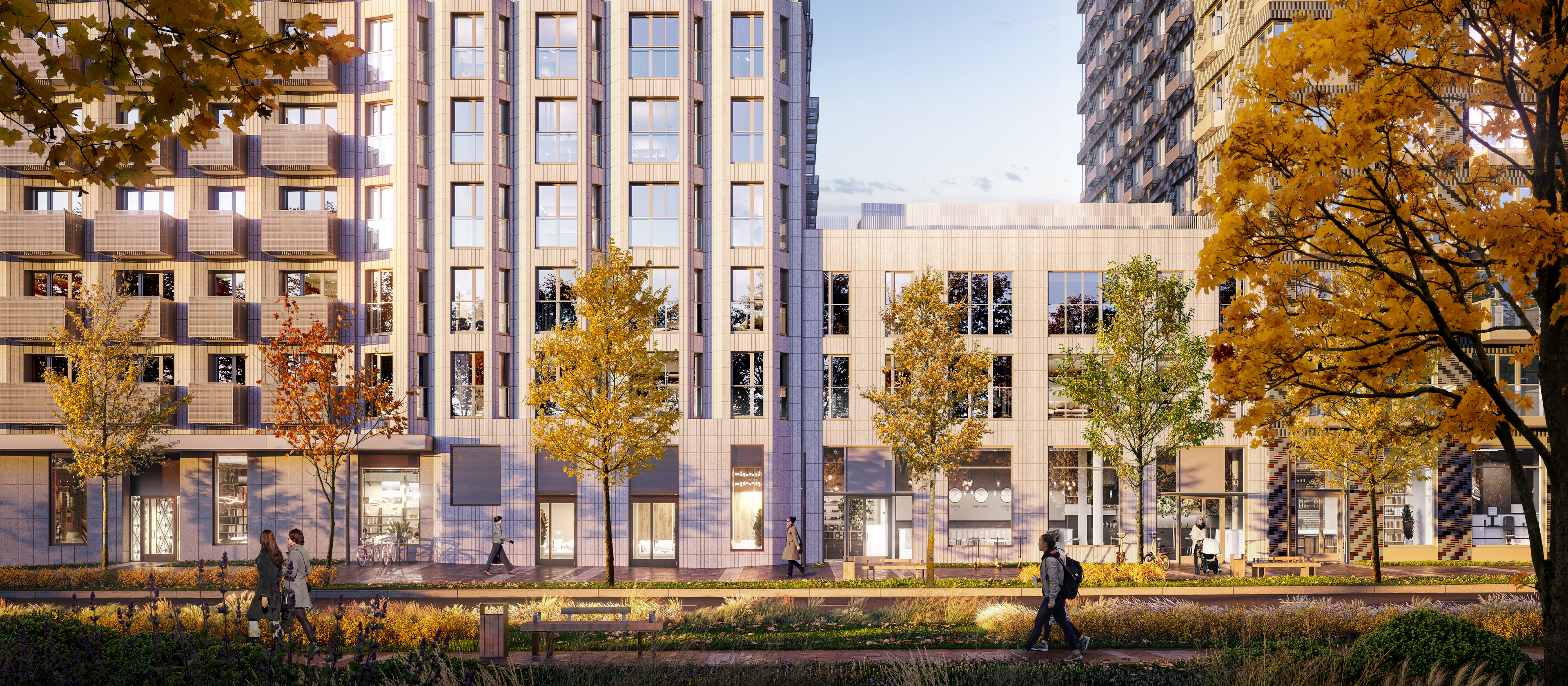 В проекте будет вся необходимая инфраструктура: детский сад на 350 малышей и школа на 950 мест. Через весь квартал протянется пешеходный бульвар для прогулок и отдыха на свежем воздухе. А на первых этажах домов откроются кафе, магазины, пункты выдачи маркетплейсов и другие полезные сервисы.