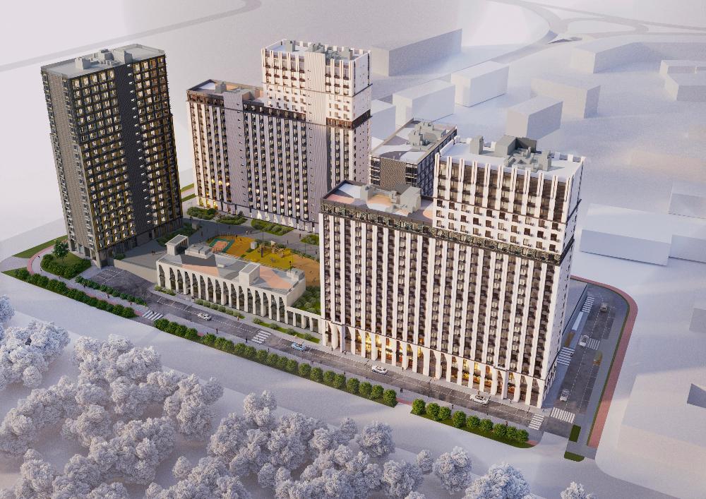 Проект состоит из зданий разной высоты и разной по характеру архитектуры. Узнаваемой доминантой квартала станет башня из стекла и металла.