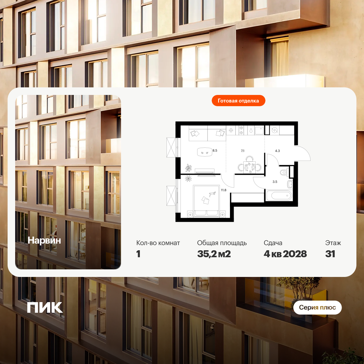 В проекте широкий выбор планировок с мастер-спальнями, кухнями-нишами, гардеробными и постирочными. Семьям с детьми понравятся квартиры со спальнями, разнесёнными по разные стороны гостиной. Мы предусмотрели множество вариантов остекления и балконов: есть планировки с панорамными и угловыми окнами, угловыми и классическими балконами. А для тех, кто хочет получить максимум пространства, есть квартиры с потолками до 5,3 метра. Артикул - 971866