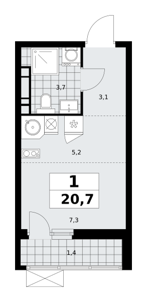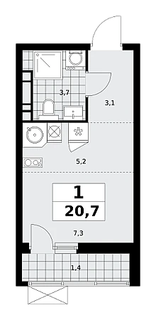Продаётся квартира-студия, площадью 20,7 кв. м на 7-м этаже дома комфорт-класса в ЖК "Скандинавия". Квартира с функциональной планировкой: большие окна, высота потолка 2,95 м, балкон.