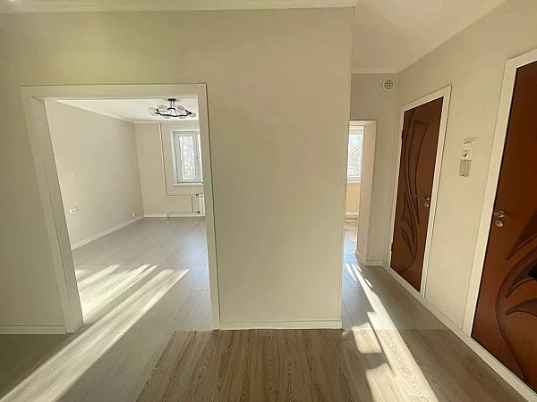 Общая площадь квартиры 52,2 кв.м., две изолированные комнаты - 17 кв.м. и 13 кв.м. с выходом на застекленный балкон, кухня 8 кв.м., санузел раздельный.