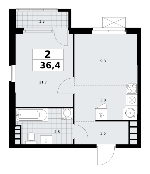 Купить 2к квартиру 56 м²