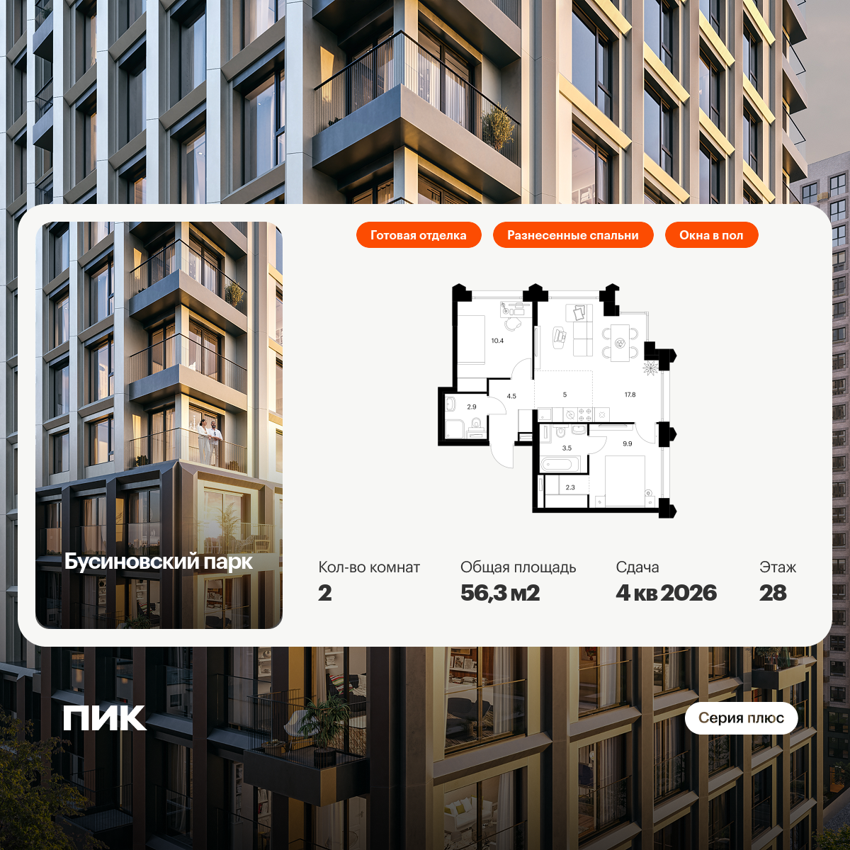 Купить 2к квартиру 57 м²