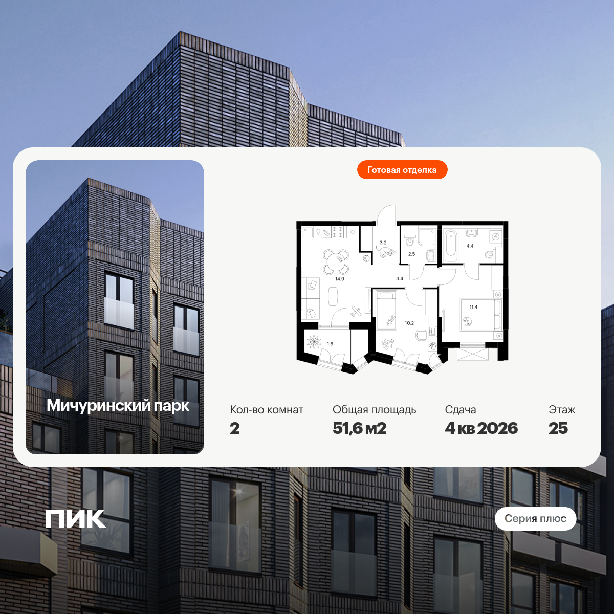 Купить 2к квартиру 51 м² в ЖК Кронштадтский 9