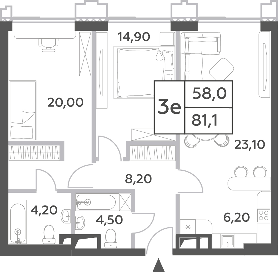 Купить 3к квартиру 65 м² в ЖК Very на Ботанической