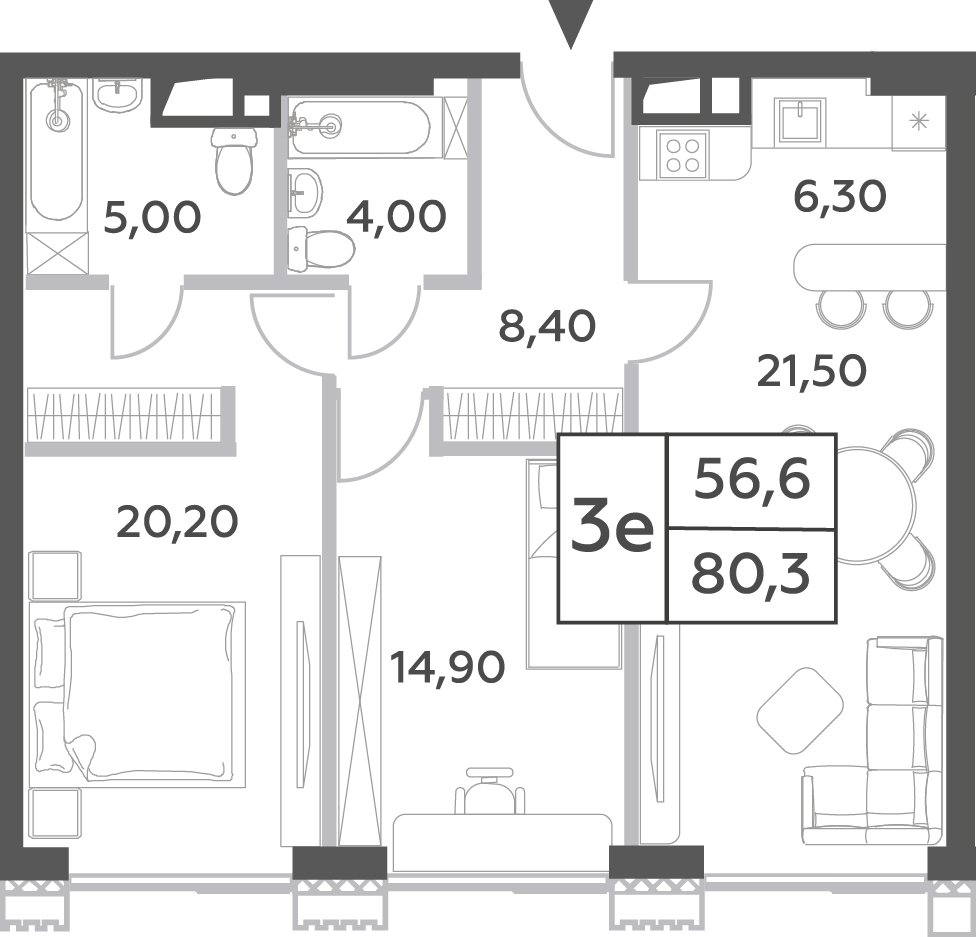 Продается 3-к квартира площадью 65.8 кв.м. на 16-м этаже 29 этажного дома в ЖК "Very" от ГК ОСНОВА.