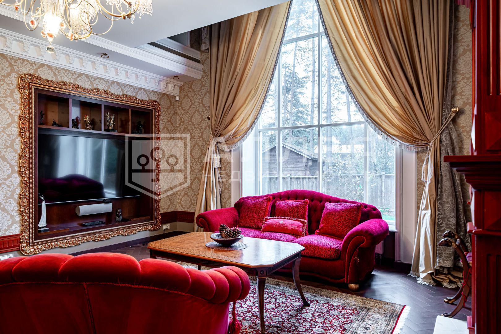 Современный загородный коттедж с бассейном, в охраняемом коттеджном посёлке. Дом построен из высококачественных материалов. Интерьер дома выполнен с использованием итальянской мебели и текстиля. В контур дома входят 5 спален, рабочий кабинет, спа-зону с бассейном и сауной, гостиная с камином, кальянная, бильярдная и гараж на 2 автомобиля.