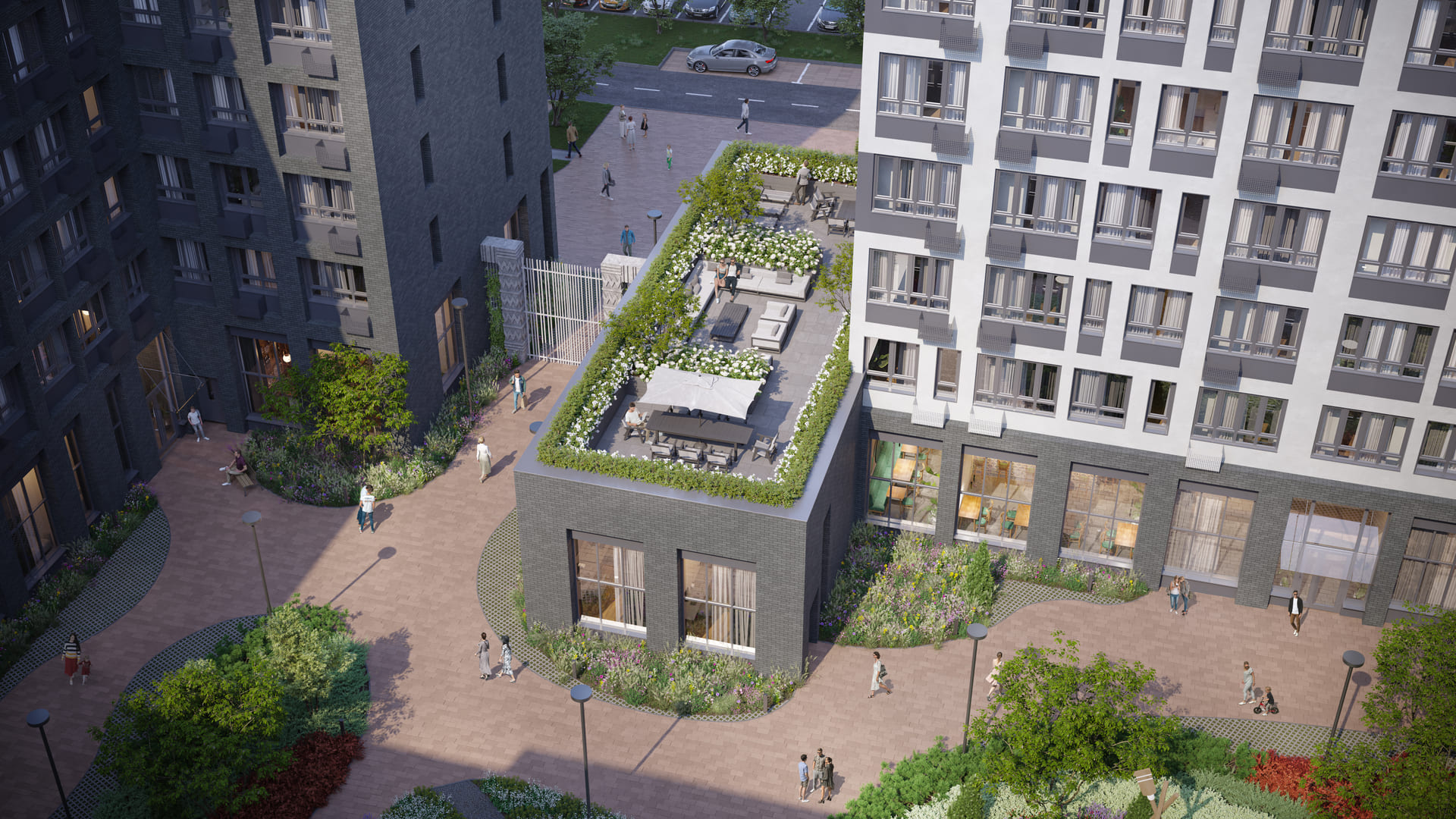 Всего в жилом комплексе будет оборудовано 6 га территории для спокойного отдыха и около 9 га — для активного.