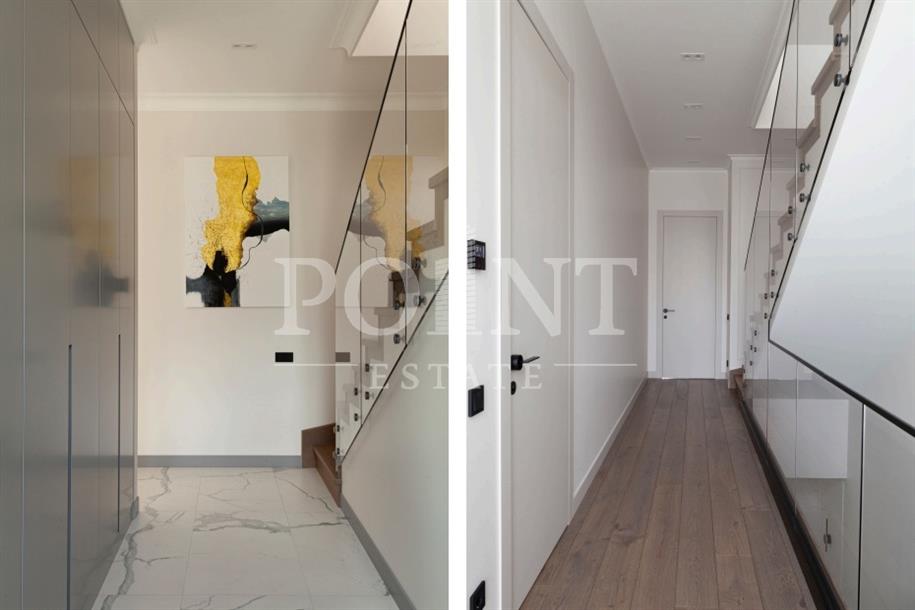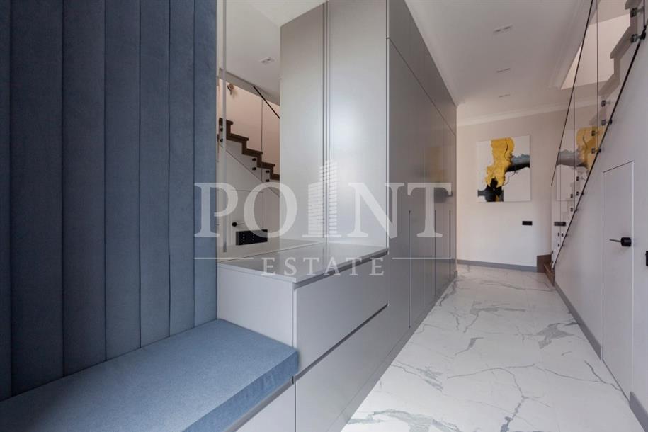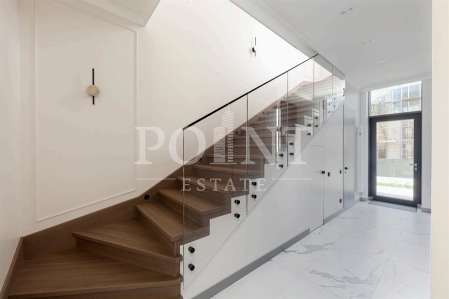 Лот: 115729. На продажу предлагается четырехуровневый таунхаус площадью 278 кв.м под ключ с мебелью, расположенный на участке 1,53 сотки в коттеджном поселке "Парк Фонте". В таунхаусе планировка продумана до мелочей: 1-й этаж: гостиная-столовая-кухня, прихожая, гостевой санузел, холл, терраса; 2-й этаж: спальня с санузлом, спальня с гардеробной и санузлом, холл; 3-й этаж: спальня с гардеробной и санузлом, спальня с санузлом, постирочная, холл; Мансарда: кухня, терраса. Имеется парковка на два машиноместа. Сам поселок предлагает прекрасные комфортные условия проживания в экологически чистой местности. Ухоженная, зеленая территория с ландшафтом, парковая зона с озером и пляжем. На территории имеются детские игровые площадки, спортивная зона.