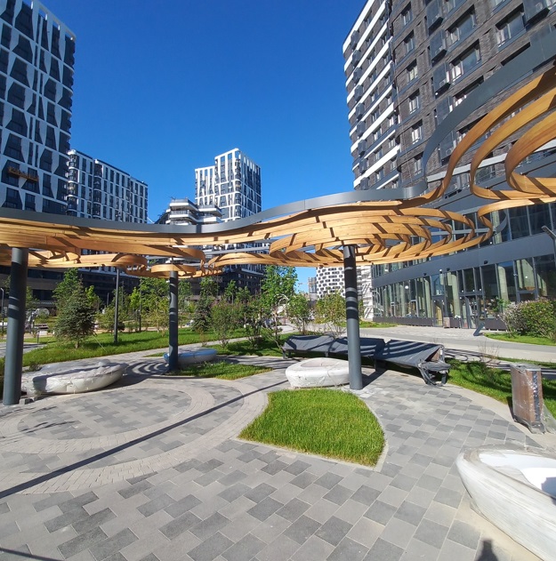 Расположено в самом центре жилого комплекса, на пересечении трех кварталов ЖК. Стабильный пешеходный и автомобильный трафик.