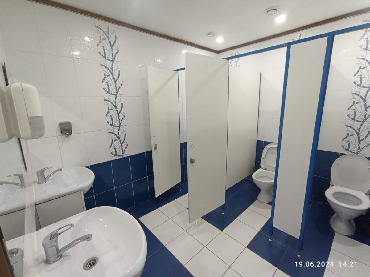 Помещение занимает три этажа, состоит: 3 обеденных зала, служебные помещения, 6 кухонь, моичная, душевая, подсобные и складские помещения, 8 с/у.