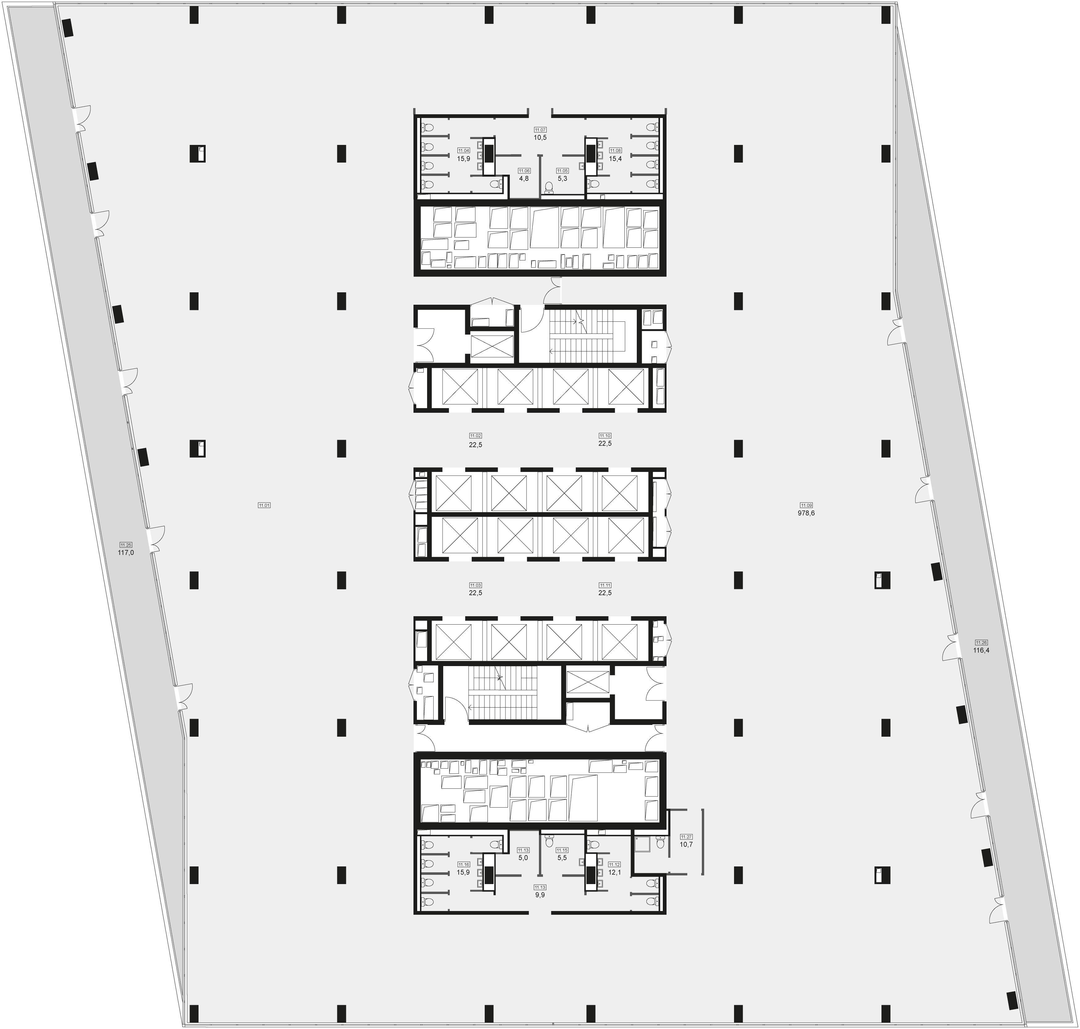 Многоуровневый паркинг на 313 м/м, из них 147 м/м доступны в аренду вместе с офисами. Ставка аренды паркинга по запросу.