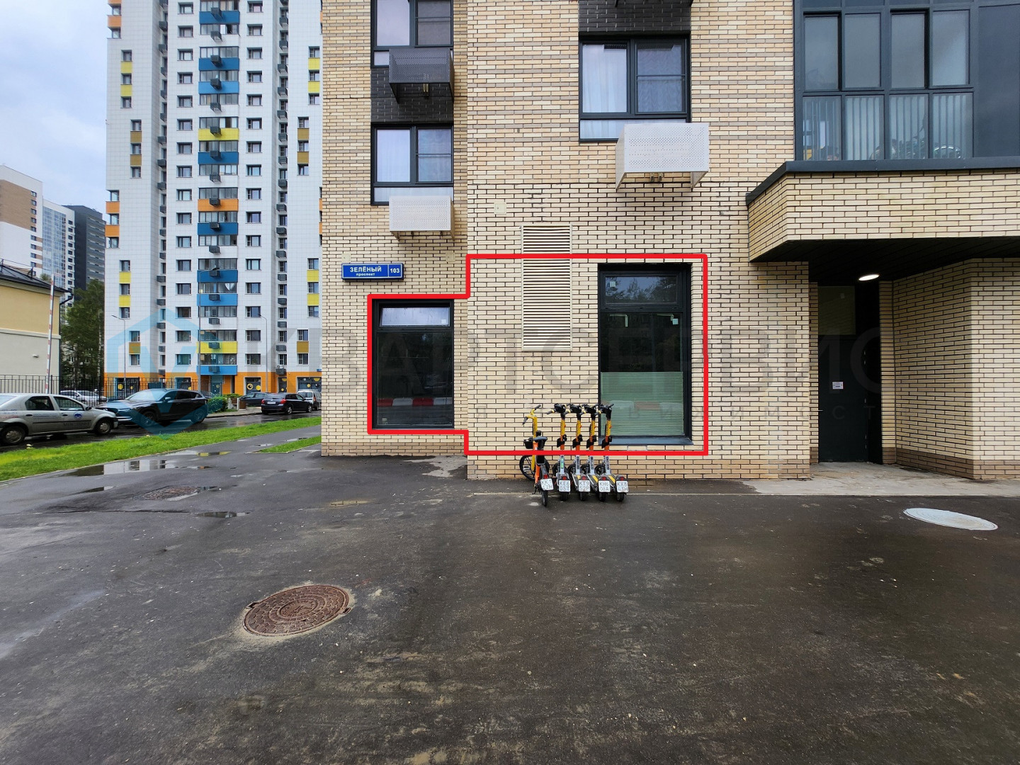 Торговое помещение в новом готовом доме. Рядом интенсивный автомобильный и пешеходный трафик.
