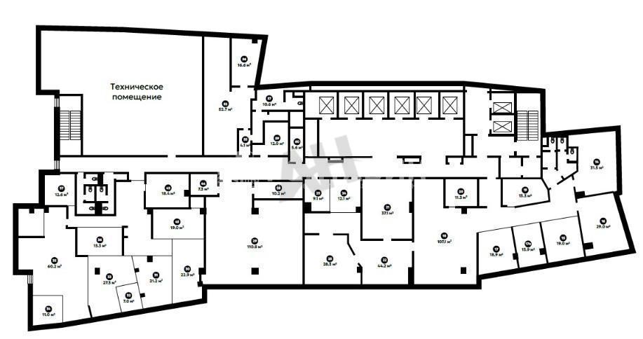 Есть серверная, переговорные комнаты, кабинеты руководителей, с/у.
