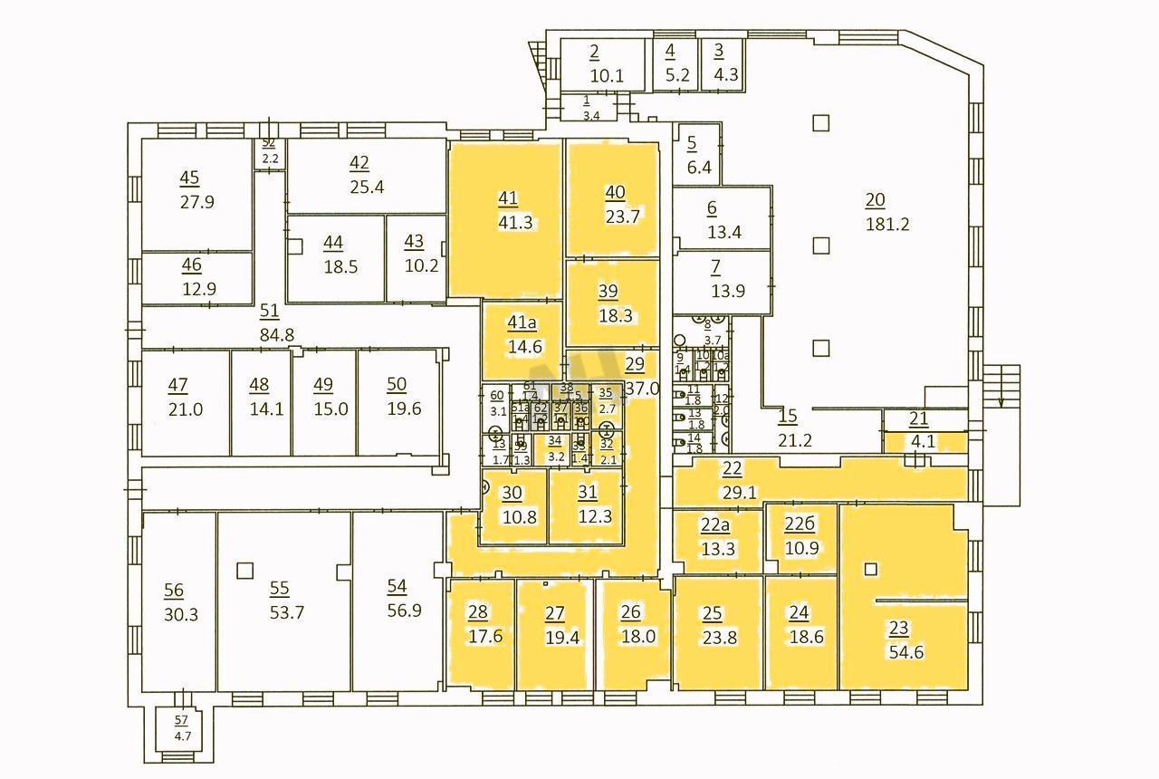 Лот №1006115 Предлагаем в аренду помещение свободного назначения 380,4 кв.м., с отдельным входом cо двора. На 2 этаже. В двухминутной шаговой доступности до м. Электрозаводская (ТПУ). Представляет собой: 9 кабинетов (54,6 кв.м., 41,3 кв.м., 23,8 кв.м., 19,4 кв.м., 17,6 кв.м., 18,3 кв.м., 14,6 кв.м., 13,4 кв.м., 10,9 кв.м.; складские помещения (23,7 + 12,3 кв.м.), серверная, кухня 10,8 кв.м., а так же 3 с/у. Прямая аренда. Парковка.