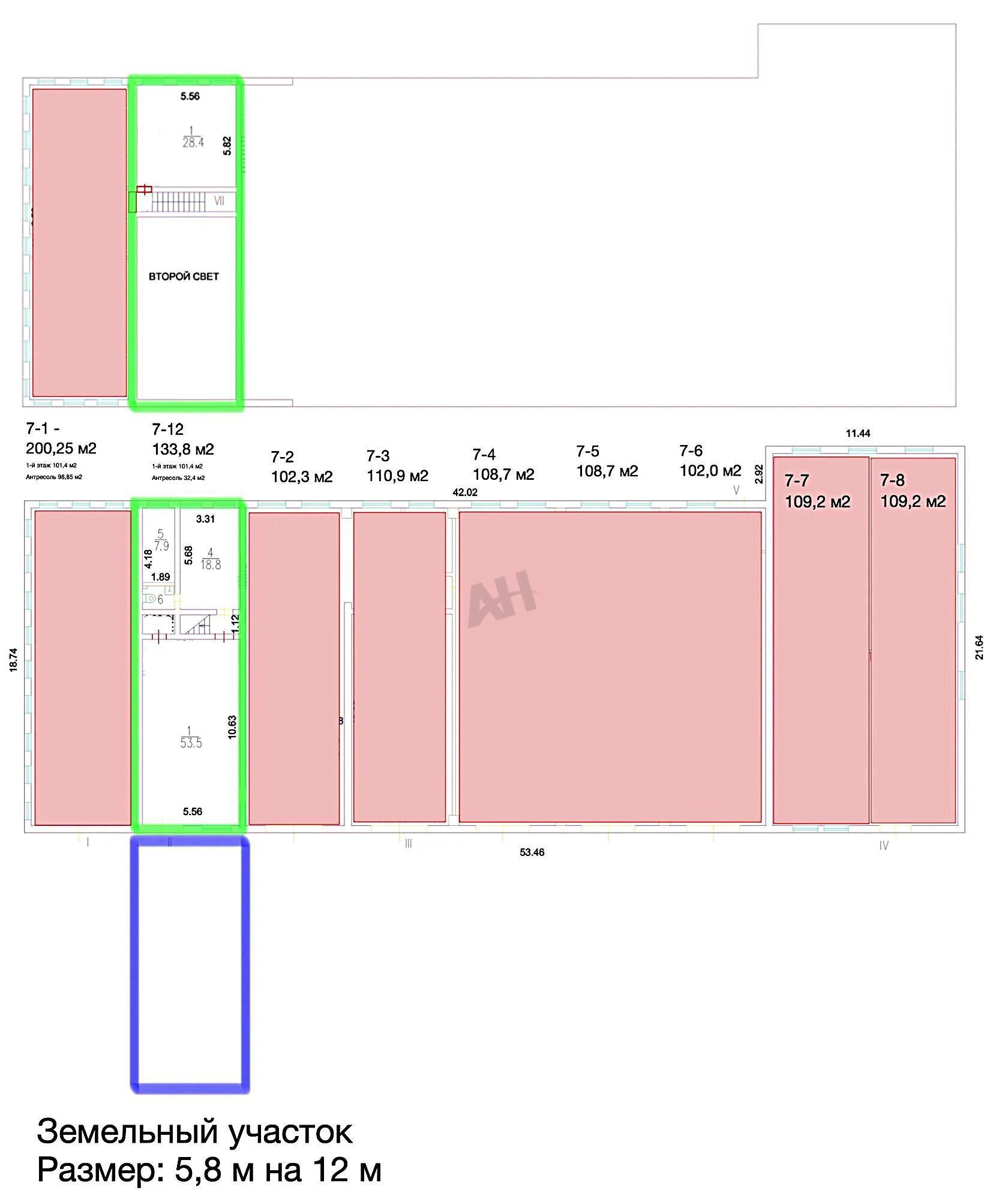 Бокс в 1-эт здании, год постpoйки 1958г, площадь 133м2 (100м2 на 1 этаже и 33м2 антресоль). Высота потолков на 2/3 первого этажа 6 м, антресоль и под ней 3 м.