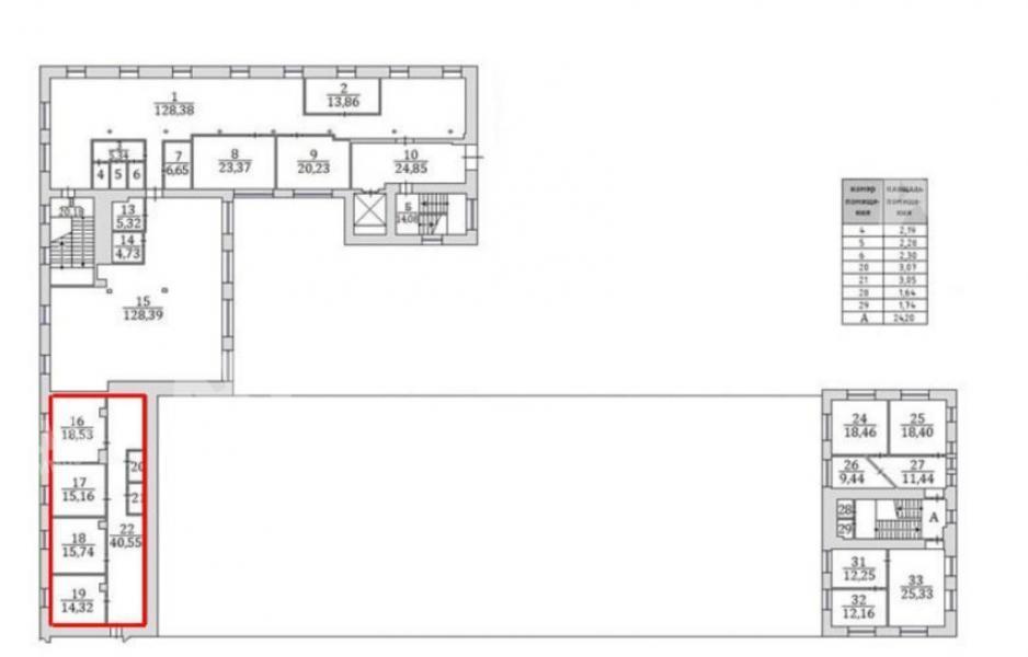 - Блок офисных помещений. 4 комнаты + коридор.