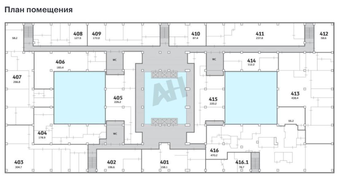 Офис обладает значительным естественным освещением и панорамным видом из окон, что создает комфортную рабочую атмосферу. Для идентификации на плане здания помещение обозначено как офис № 411.
