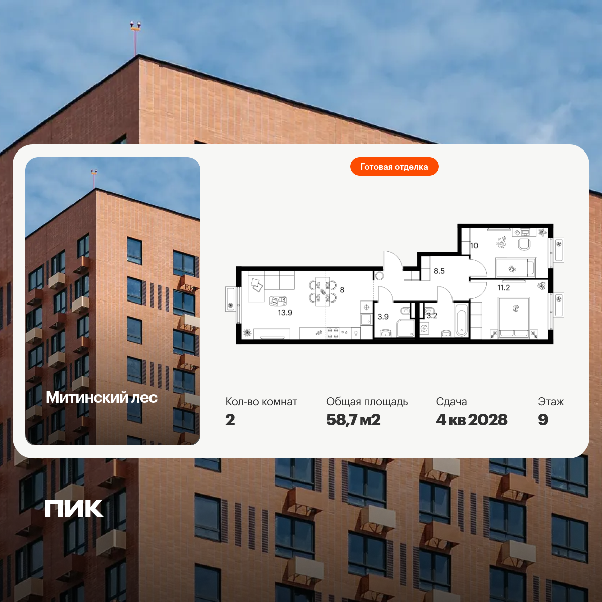 Купить 2к квартиру 54 м² в ЖК Митинский лес