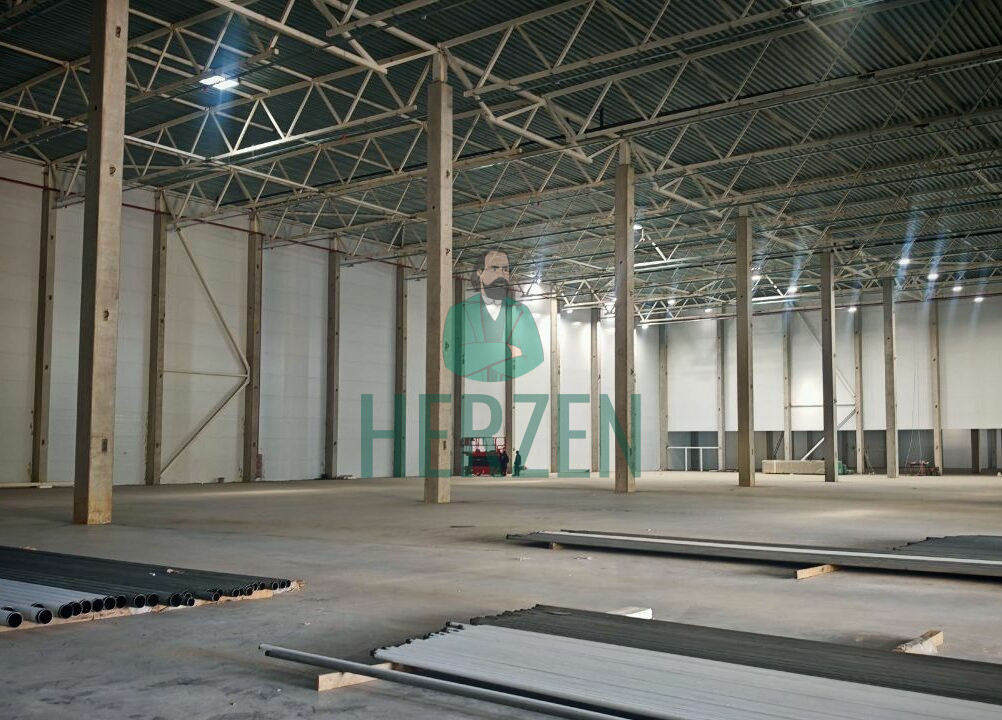 Ровный бетонный пол с антипылевым покрытием. Допустимая нагрузка на пол 5 т/м2.