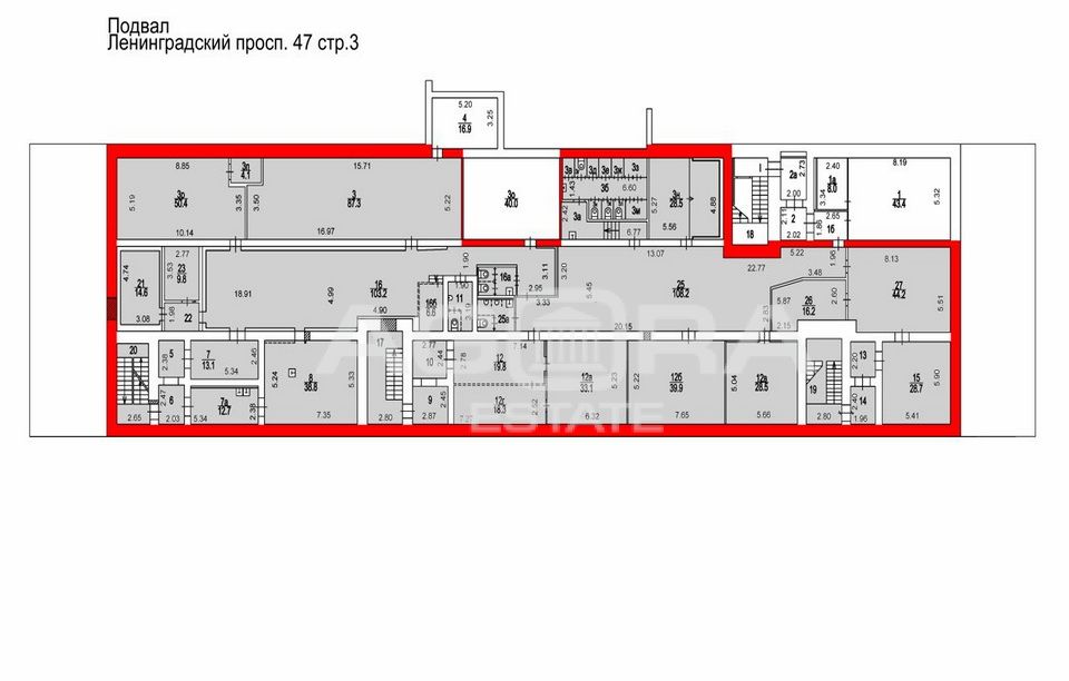 Площадь 900 кв.м, цокольный этаж. Планировка смешанная.