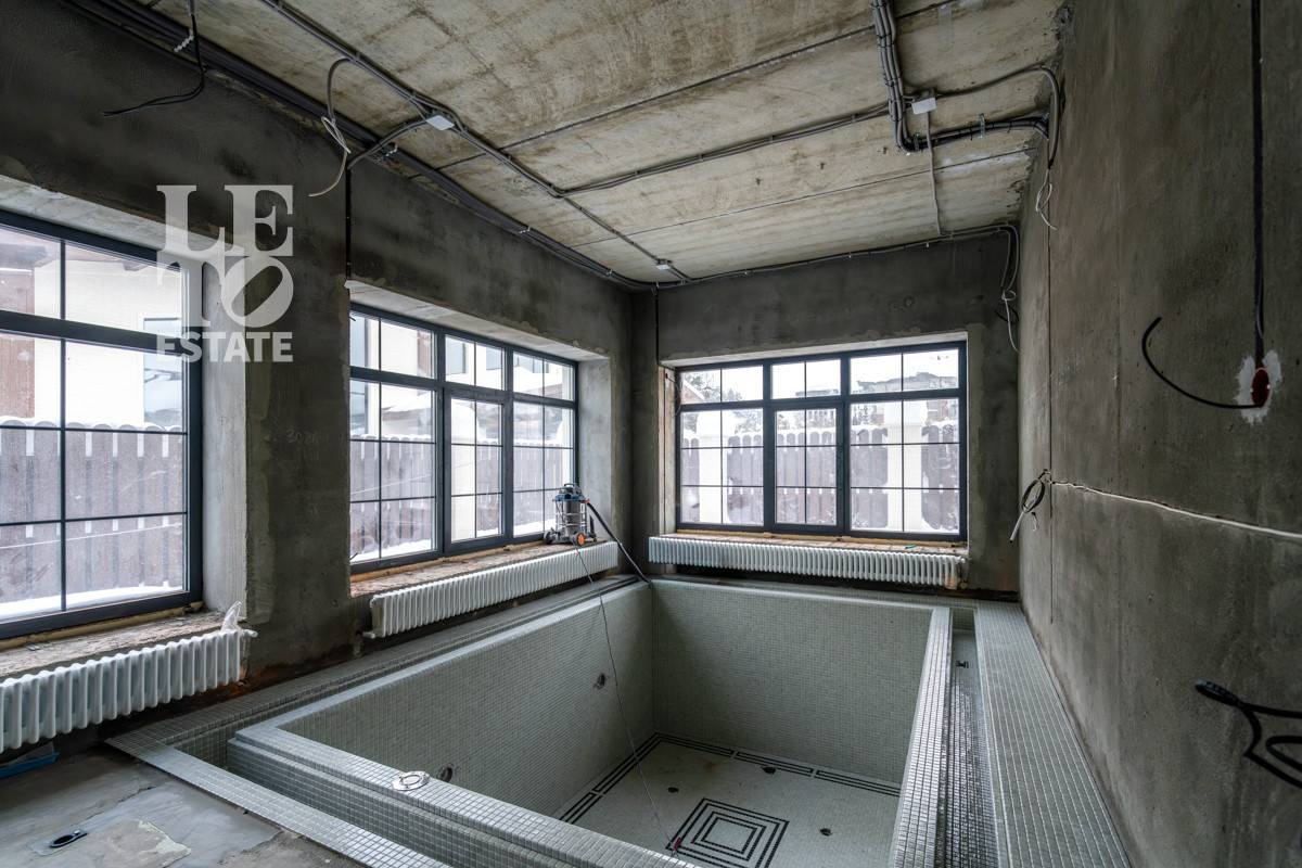 В доме три спальни и кабинет, который можно также сделать спальней. На первом этаже расположен бассейн 3*4 метра с дровяной парной. Организована котельная, установлено оборудование.