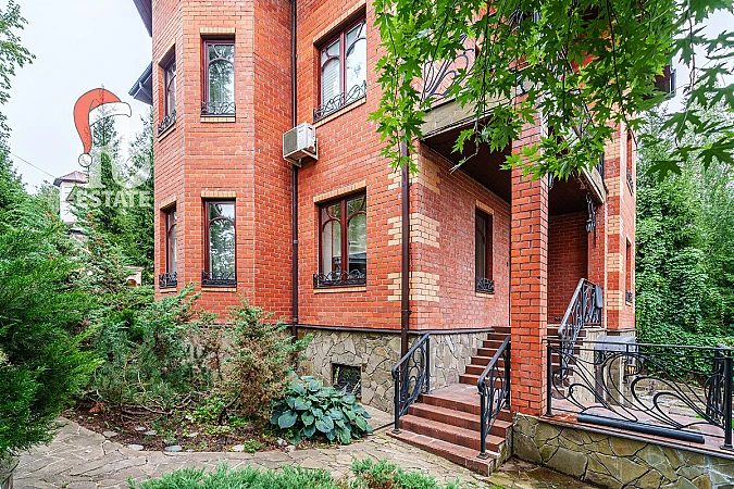 Дом построен из кирпича. Крыша выполнена из металлической черепицы. Фундамент и перекрытия в доме - монолитные.