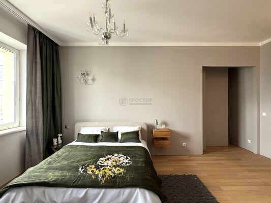 В квартире 3 спальни с отдельными рабочими зонами, 2 санузла, гардеробная, площадь коридорных зон позволяет разместить достаточное количество шкафов. Предусмотрен накопительный бойлер с доступом для обслуживания. Высота потолка 3,1 м.