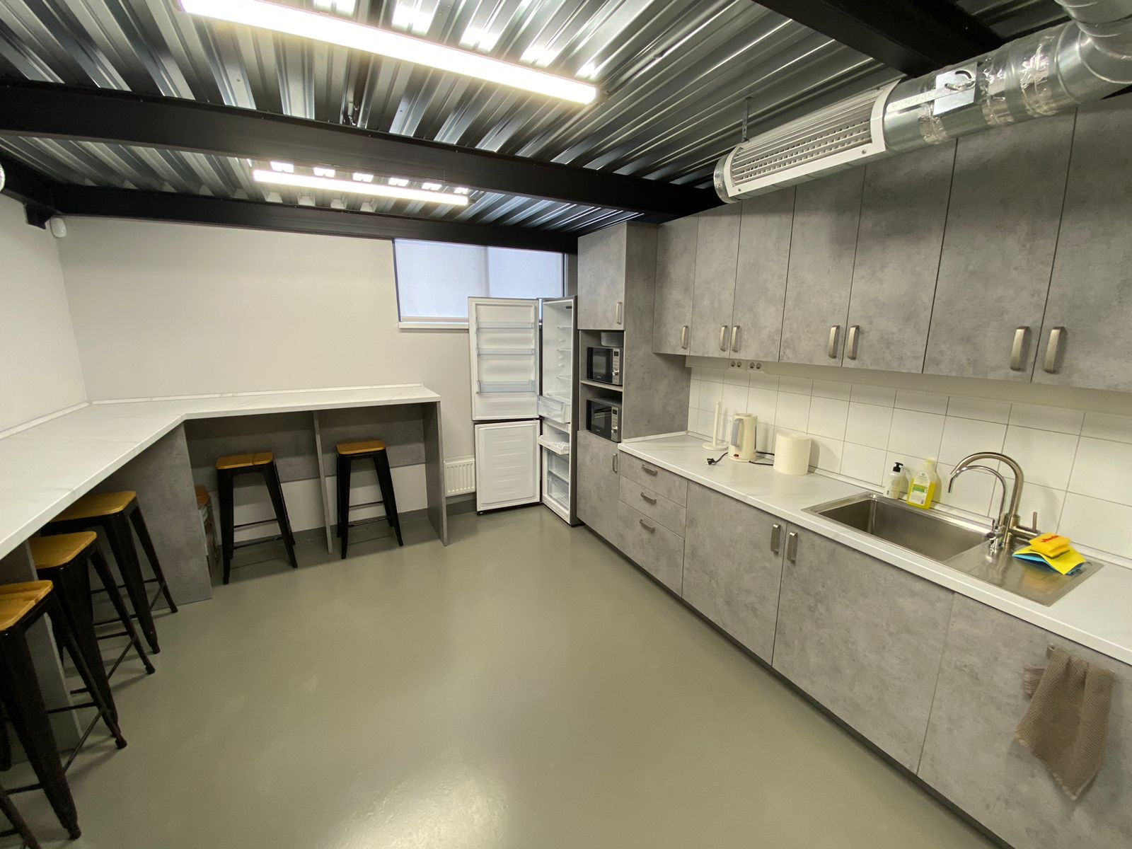 В помещении дизайнерский ремонт, мебель, оборудована кухня, переговорная зона.