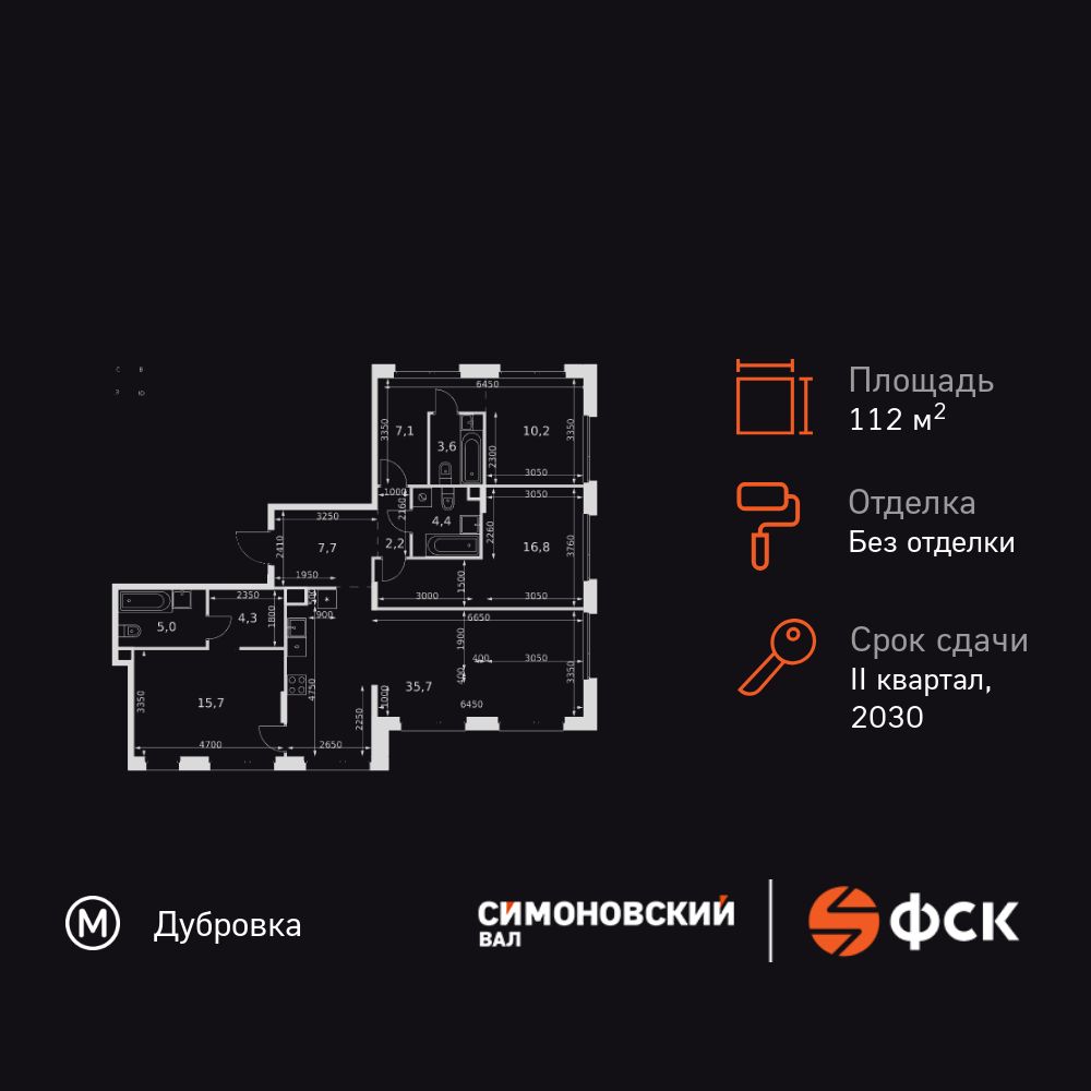 Купить 4к квартиру 112 м² в ЖК Симоновский вал