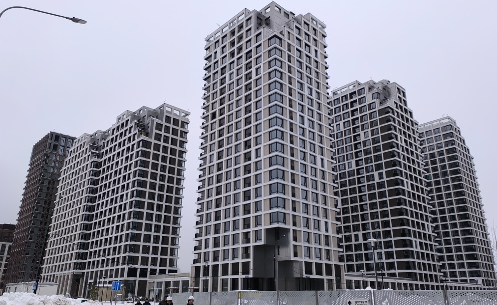 Расположено вдоль центральной дороги, рядом подземный переход, соединяющий все кварталы жилого комплекса.