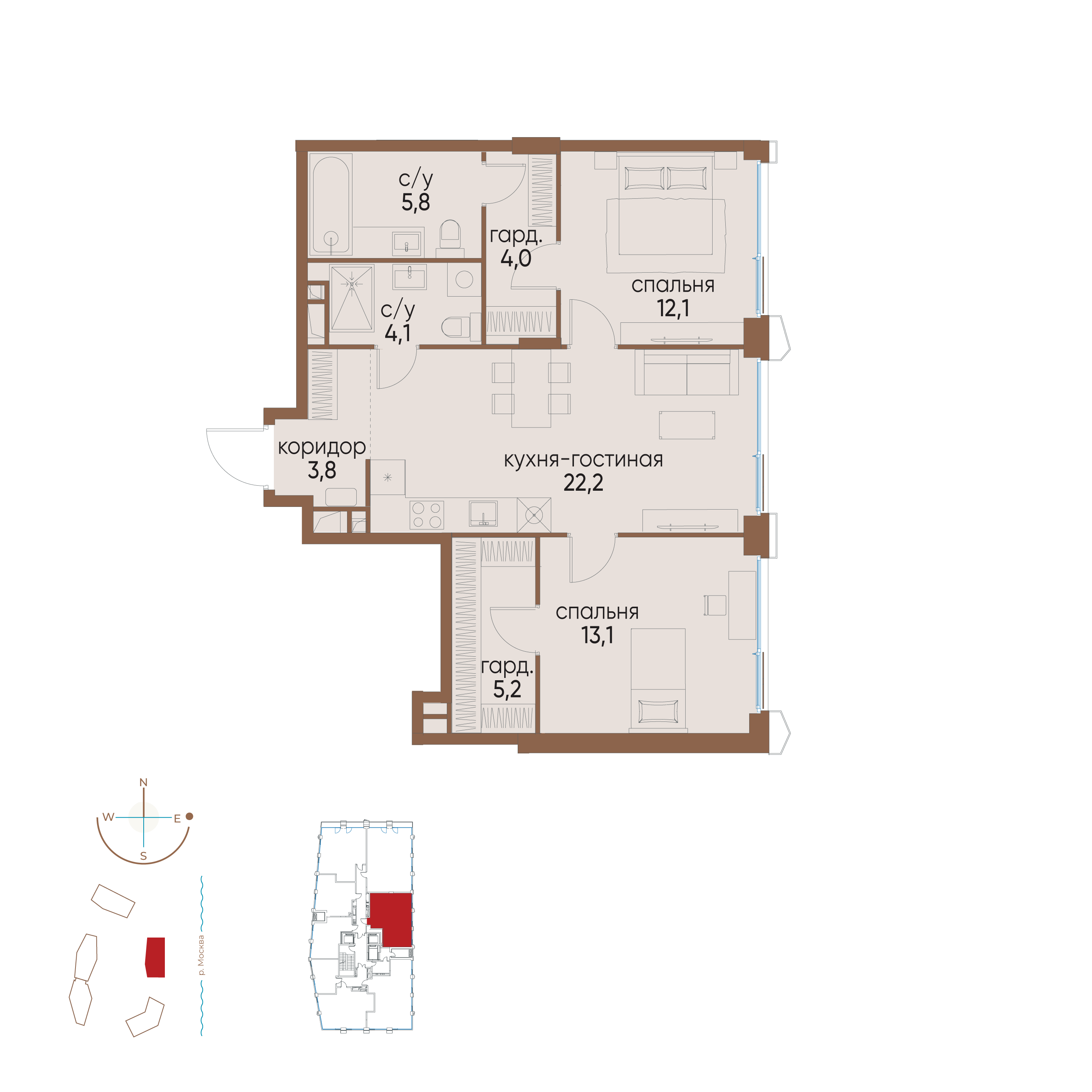 Стоимость квартиры со скидкой 8% при 100% оплате 54849480 руб.