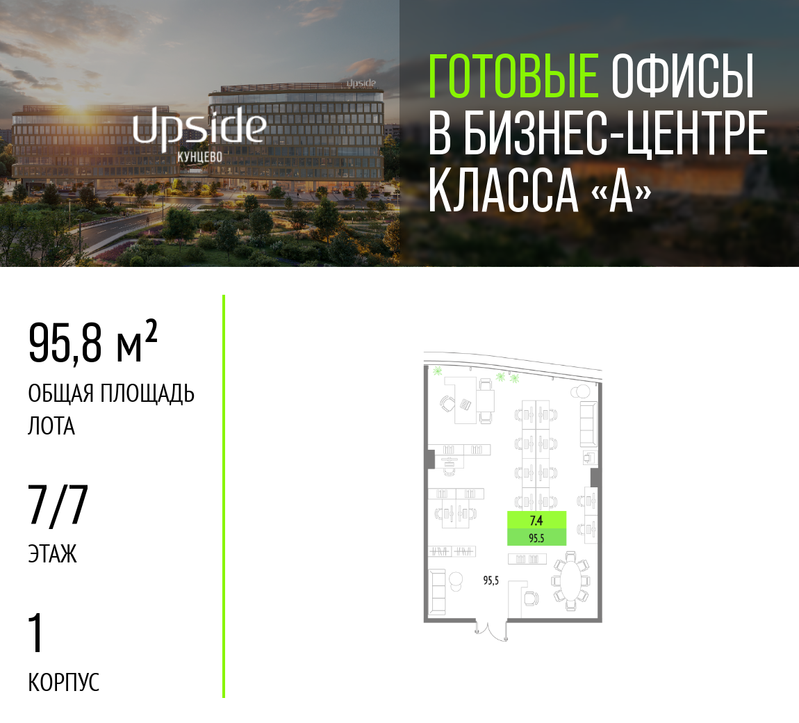 Купить офис 95 м² в БЦ Upside Kuntsevo