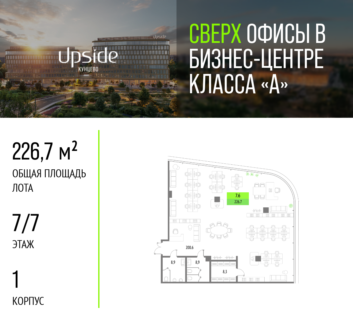 Купить офис 226 м² в БЦ Upside Kuntsevo