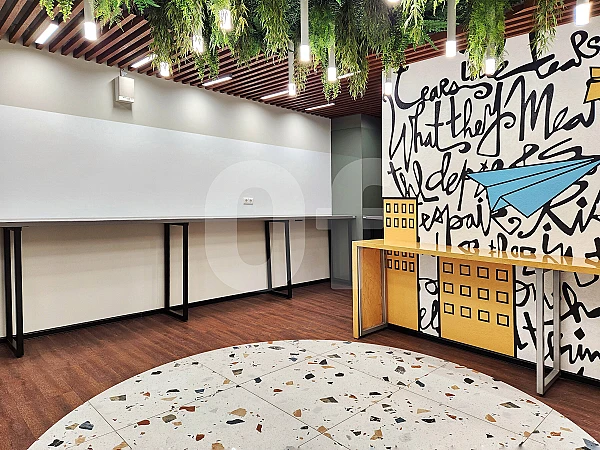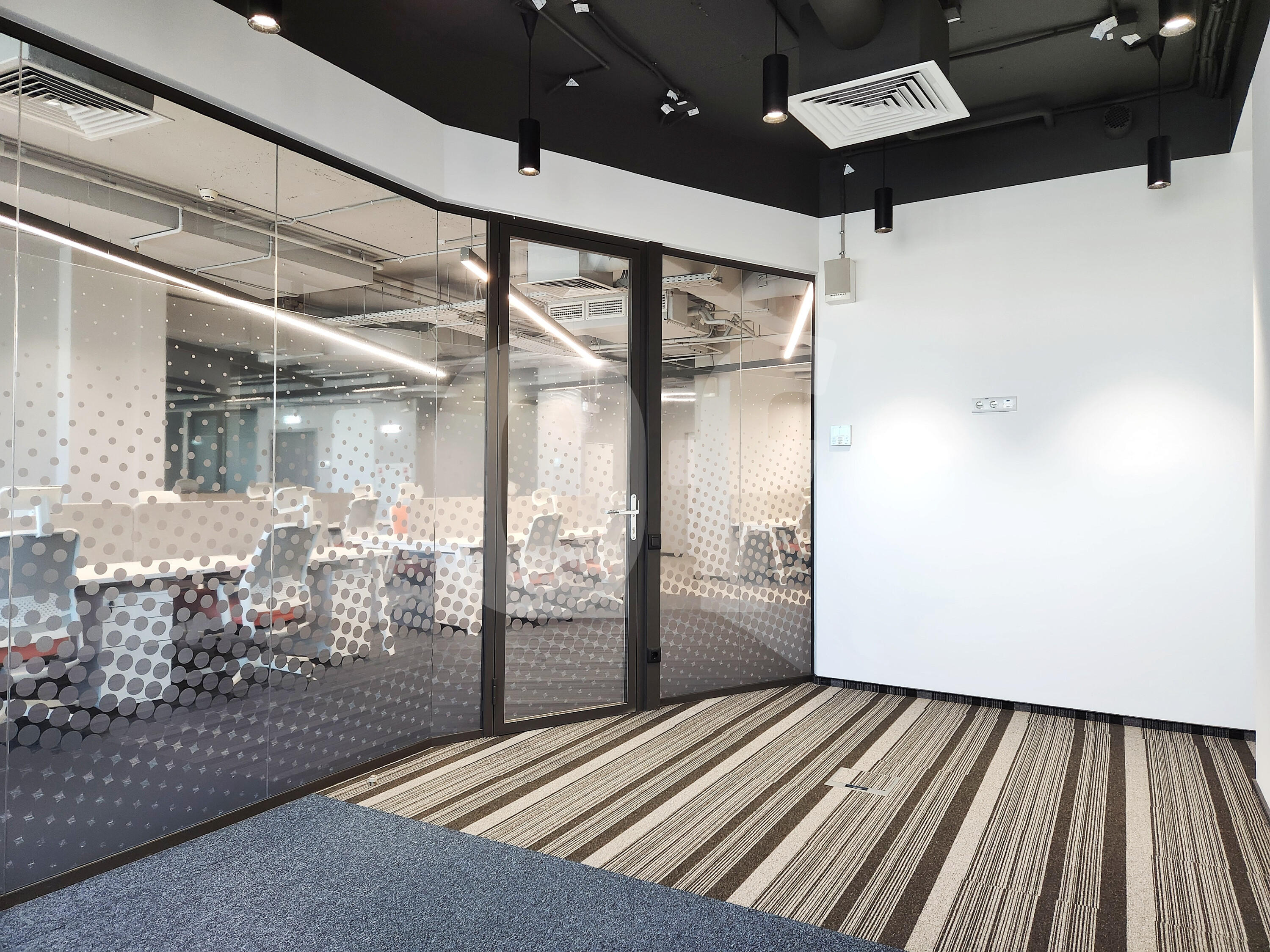 Офис включает 2 открытые рабочие зоны, 12 кабинетов с озеленением, 5 переговорных комнат и телефонную кабину. Инфраструктура дополнена принтерной, двумя оборудованными комнатами приема пищи, серверной и КУИ. Помещение отличается высокими потолками 3 метра, собственной кухонной зоной и санузлами. На всей территории доступно высокоскоростное Wi-Fi и сетевое оборудование.