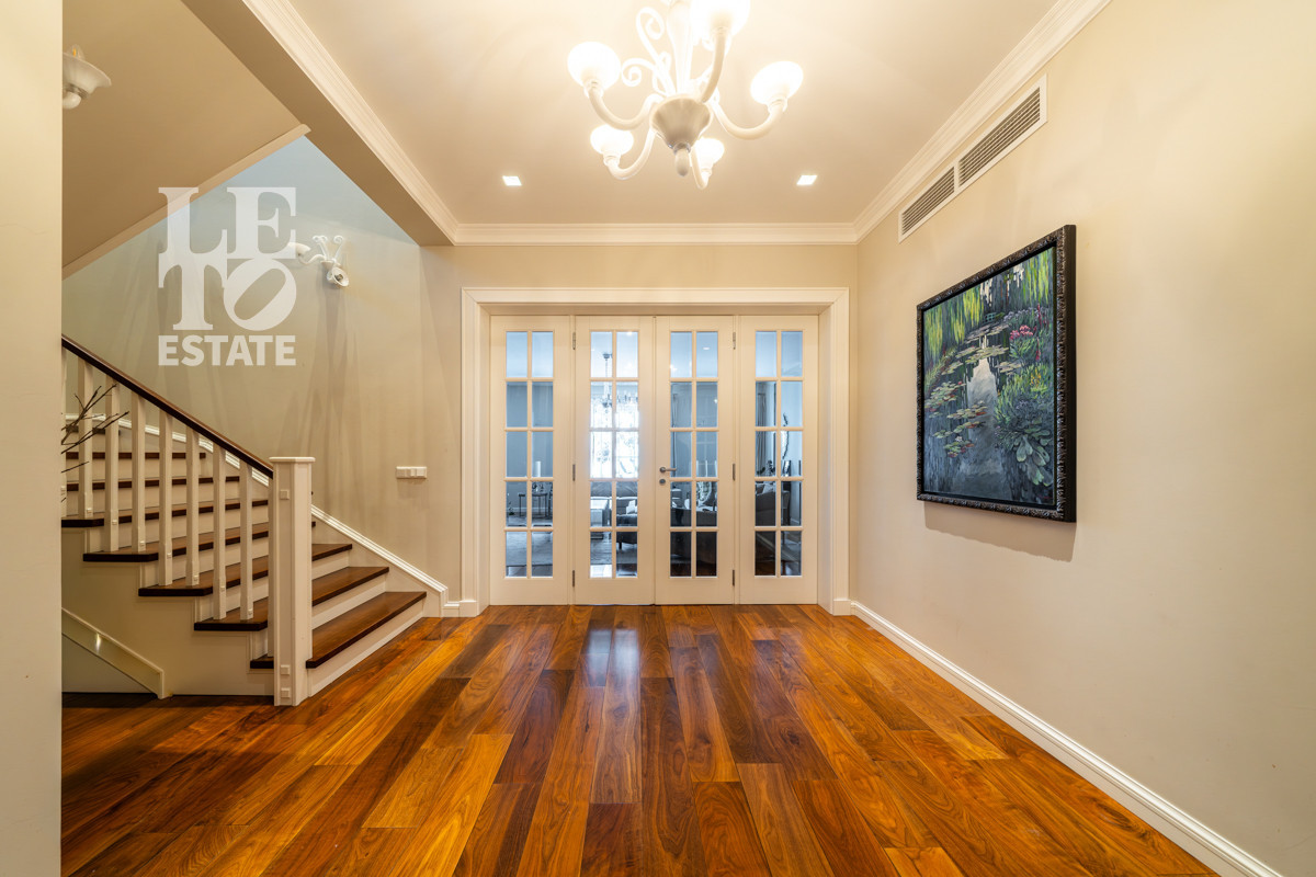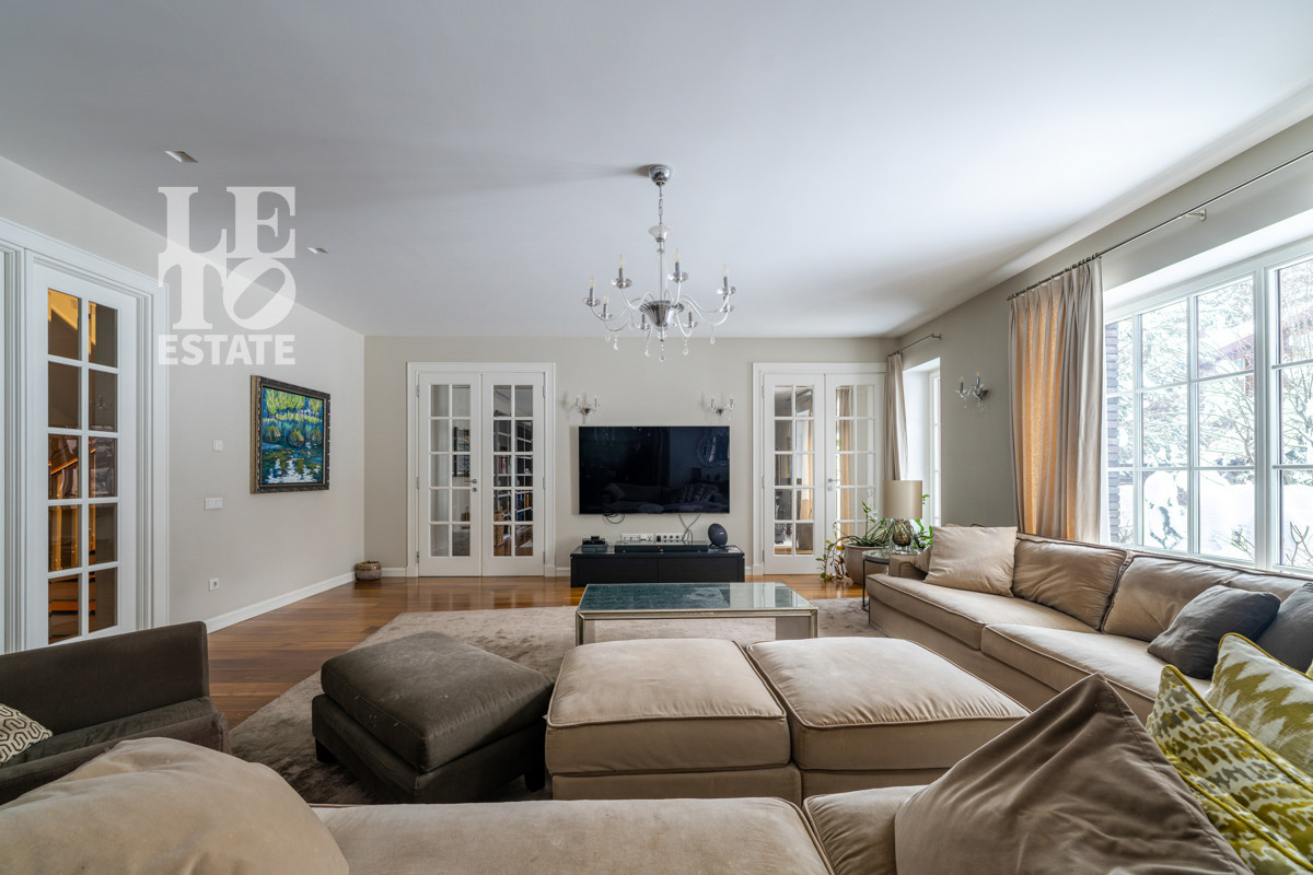 Высота потолков на первом и втором этаже - 3,6 м. Второй свет в зоне гостиной - 7,5 м.