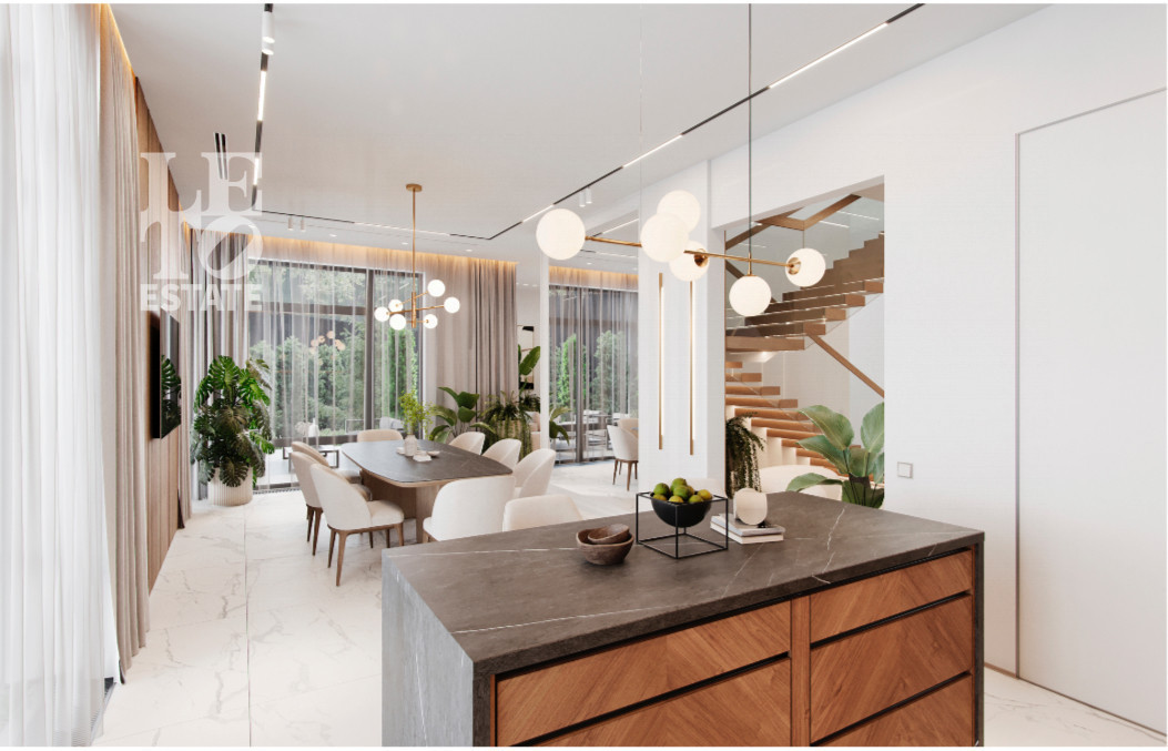 Характеристики дома: конструктив дома — монолит/кирпич; фундамент — утепленная шведская плита (УШП); фасадная отделка — натуральный камень.