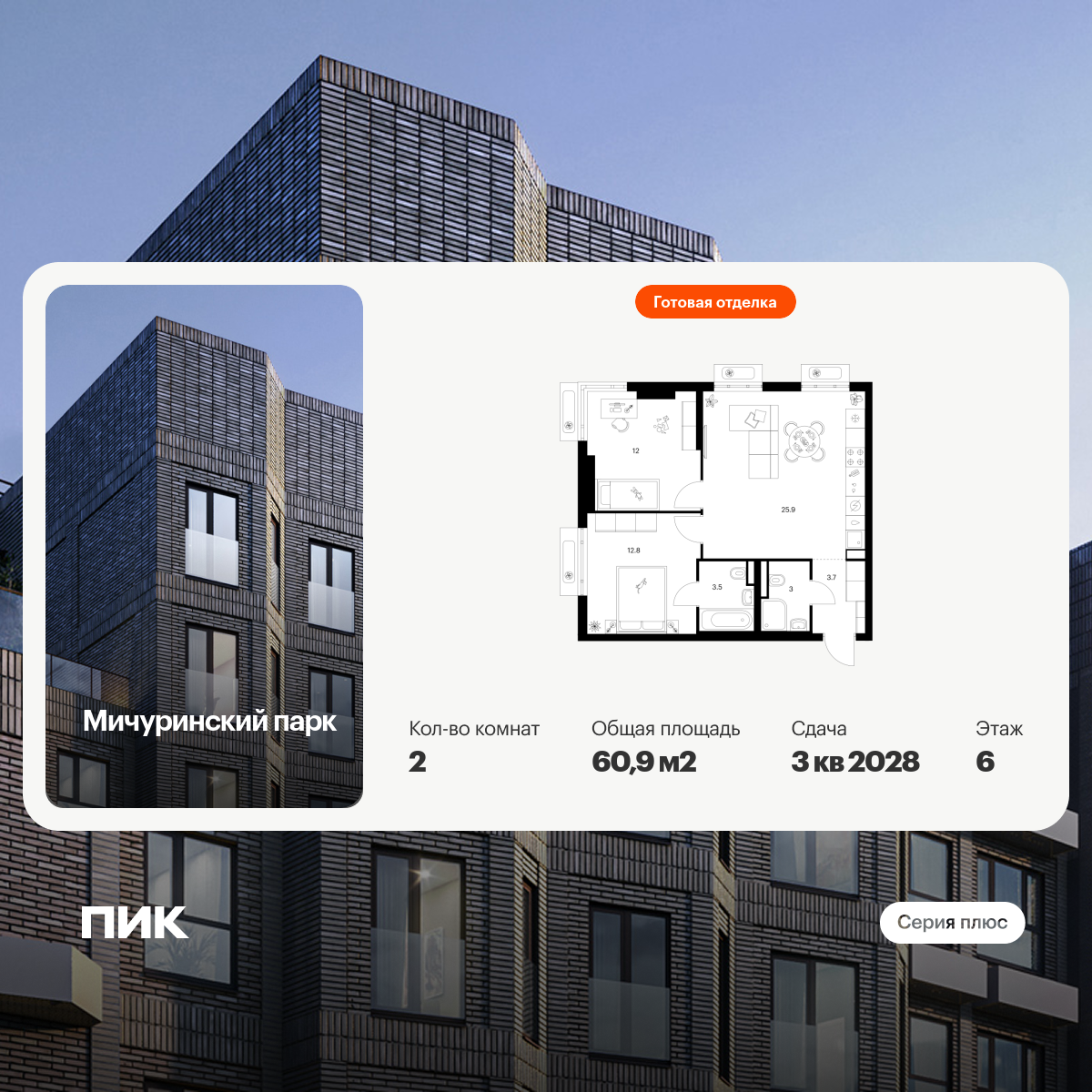 Купить 2к квартиру 67 м² в ЖК Саларьево парк