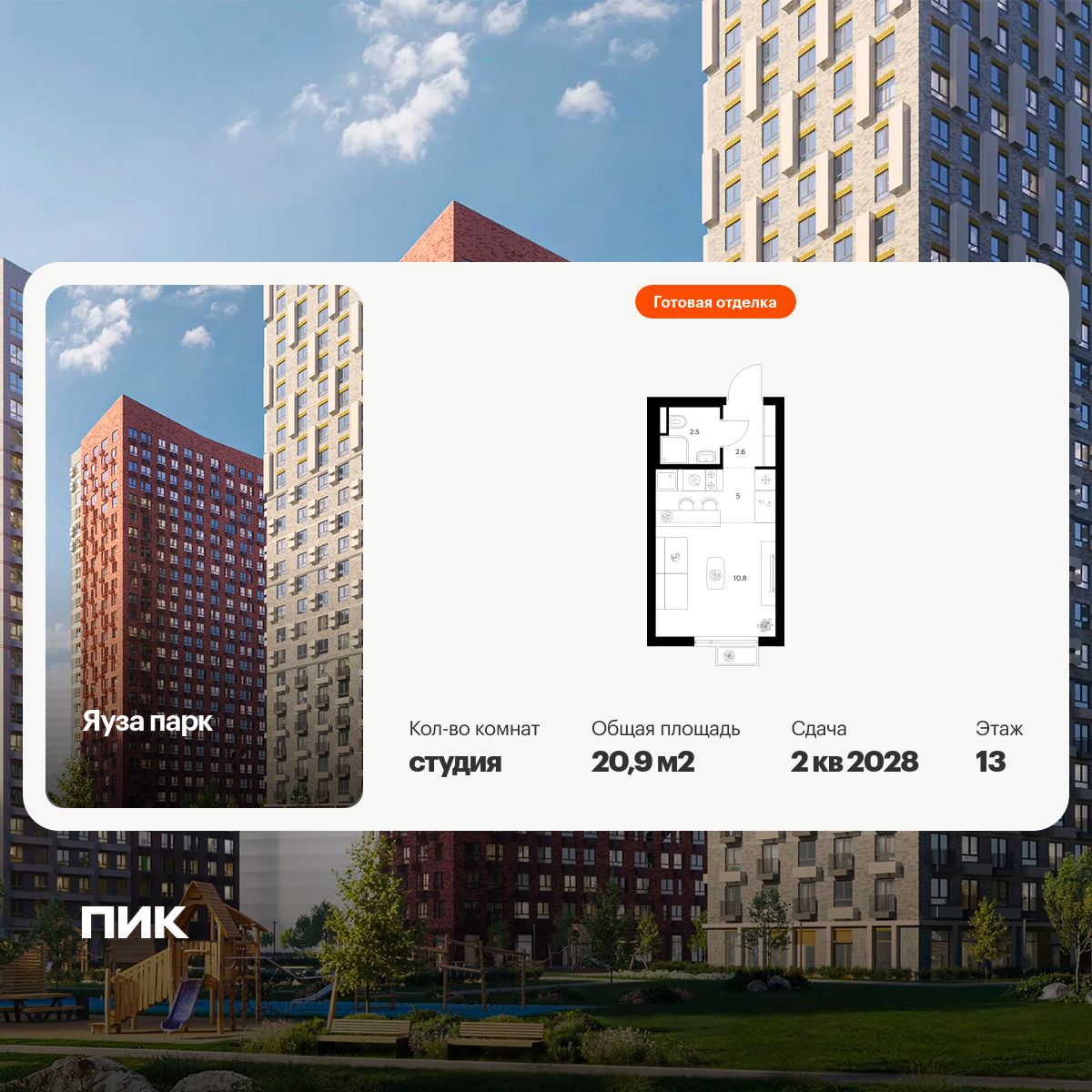 Продаётся квартира-студия площадью 19.80 кв.м на 3 этаже 15 этажного дома (Корпус 13, секция 1) проекта ПИК Яуза парк. Светлый просторный подъезд на уровне земли, функциональная планировка, большие окна, с отделкой.