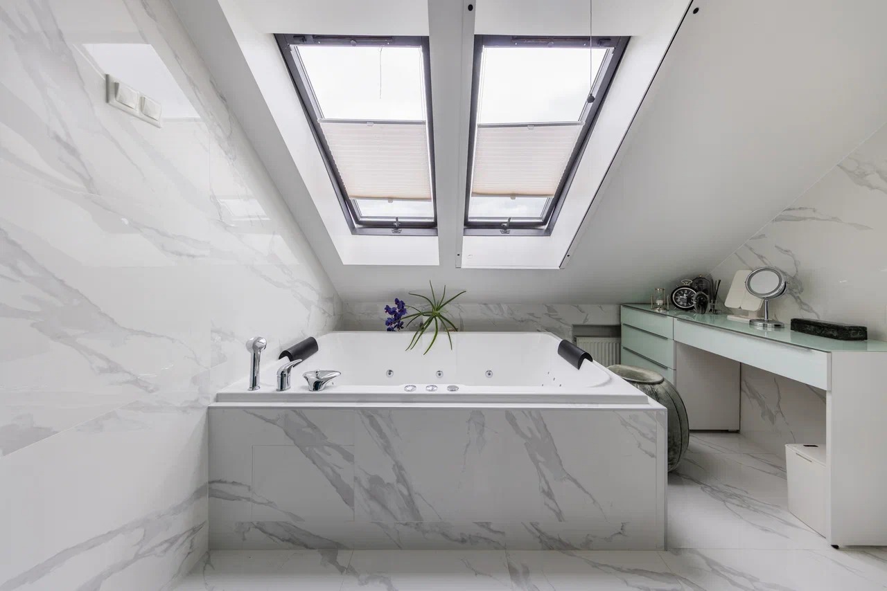 Мансардный этаж: спальня с двумя гардеробными, будуар с дровяным камином, санузел с просторной душевой и ванной.